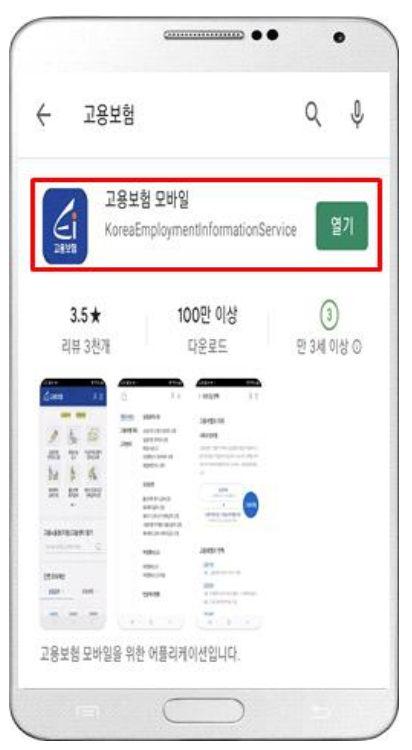 첫째, 고용보험 모바일 앱 다운로드 및 구동