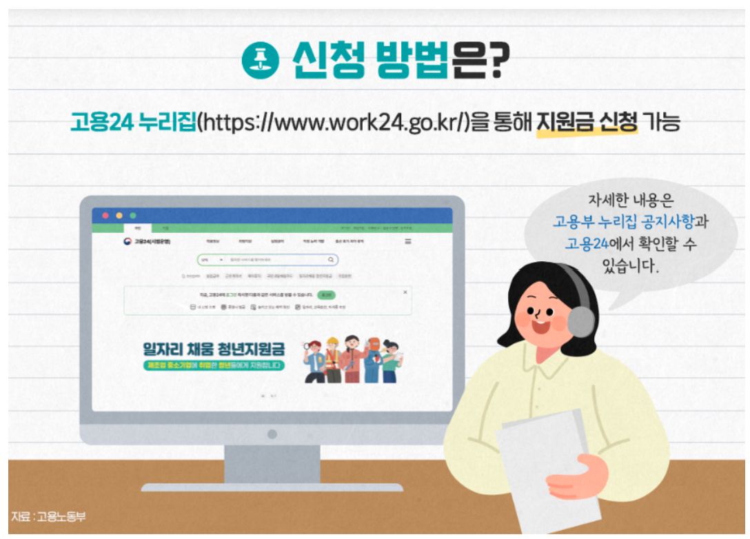 고용24를 통해 2024년 1월 22일 부터 청년이 직접 신청