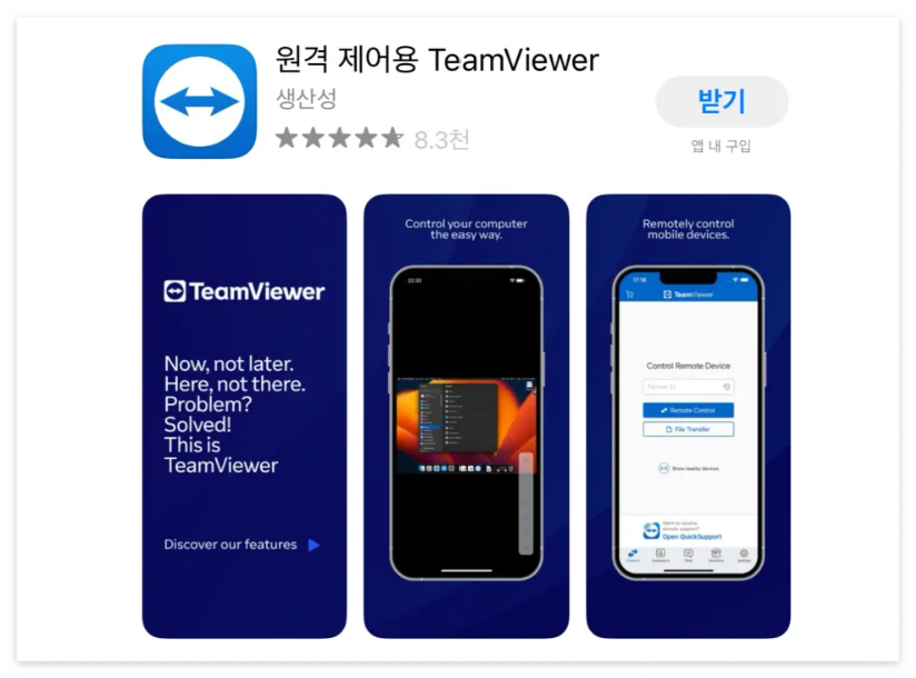1.모바일용 팀뷰어 앱 다운로드