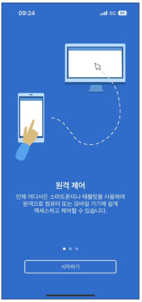 파트너 ID 입력 후 비밀번호 입력창이 뜨면 비밀번호를 입력합니다. 그러면 해당 PC화면이 모바일에서 뜨는 것을 확인할 수 있습니다. 본인 PC로 접속하고자 하는 경우에는 이어서 진행하시면 됩니다.